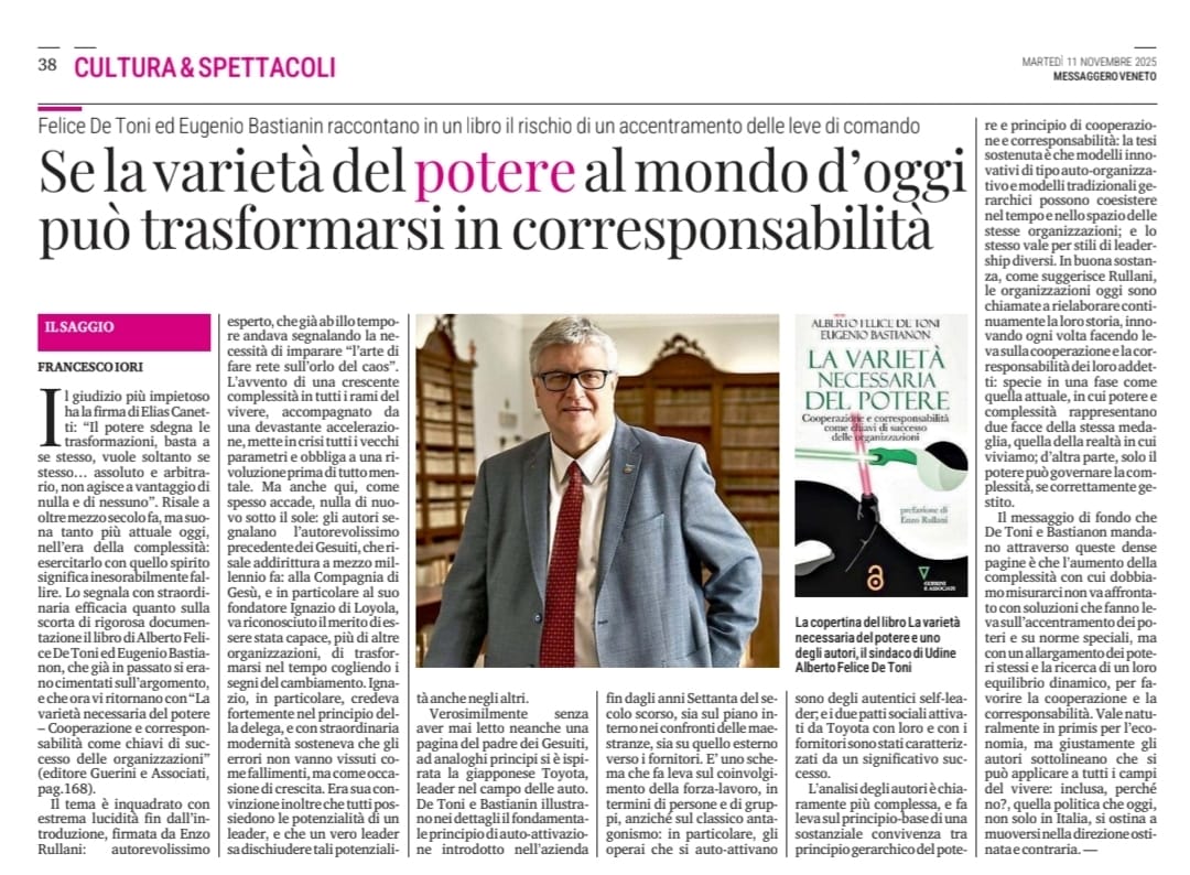 ► "Se la varietà del potere al mondo d'oggi può trasformarsi in corresponsabilità", Messaggero Veneto, articolo di Francesco Iori, 11/11/2025, p.38